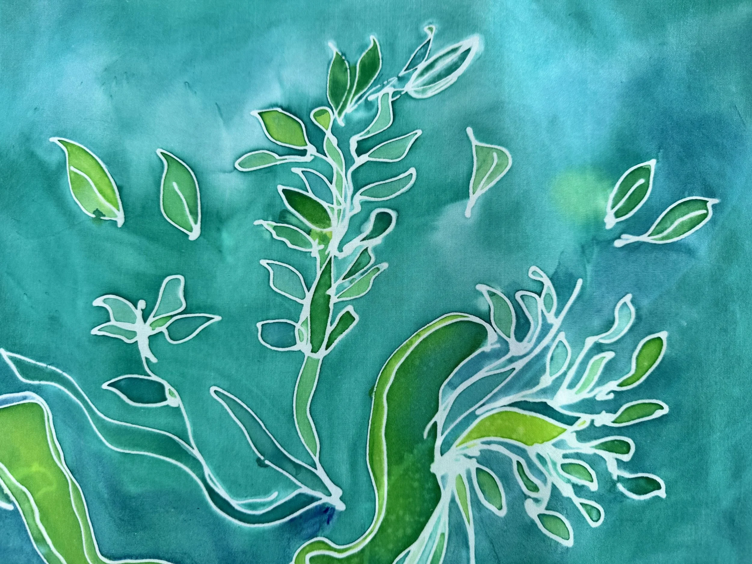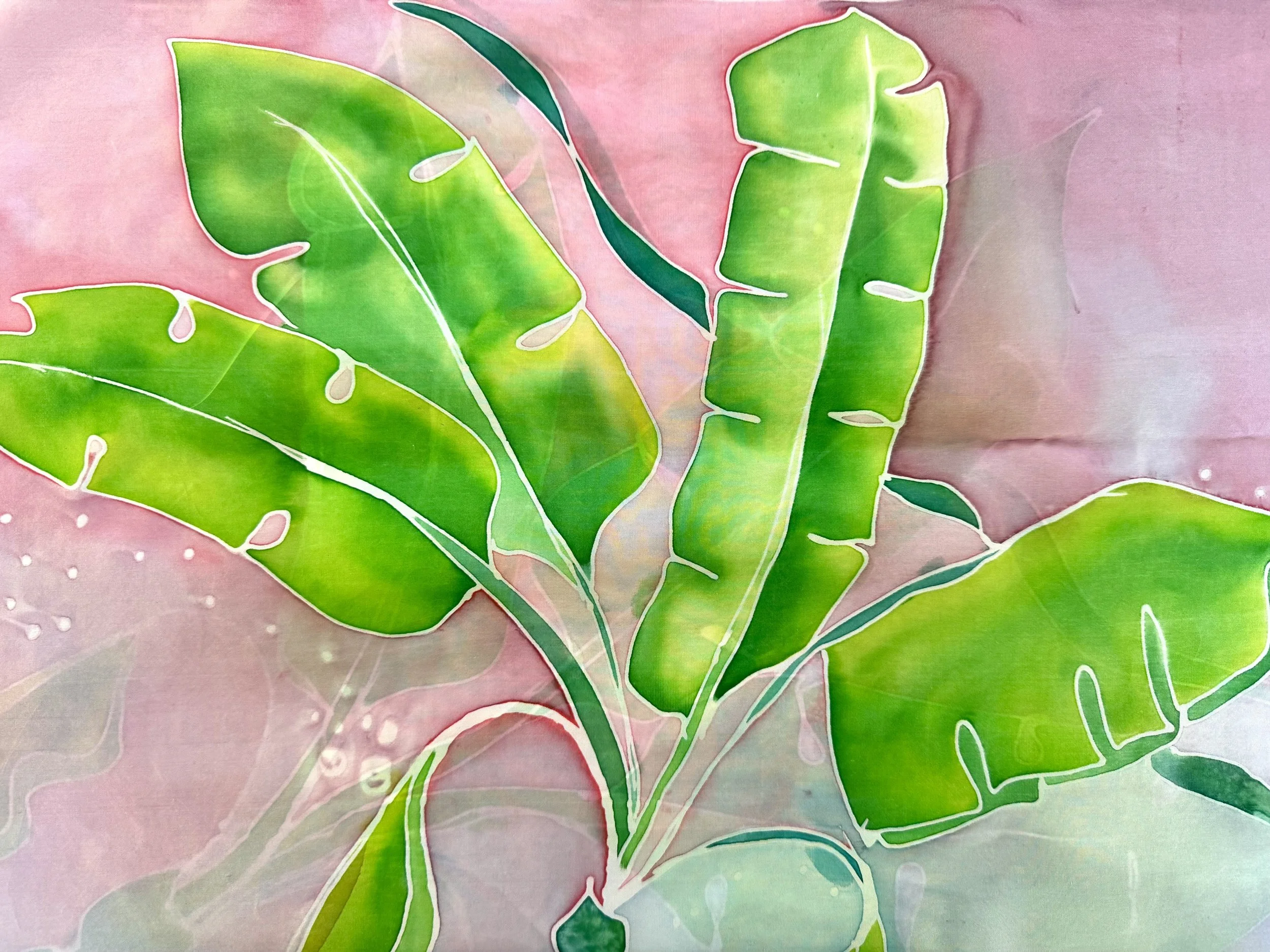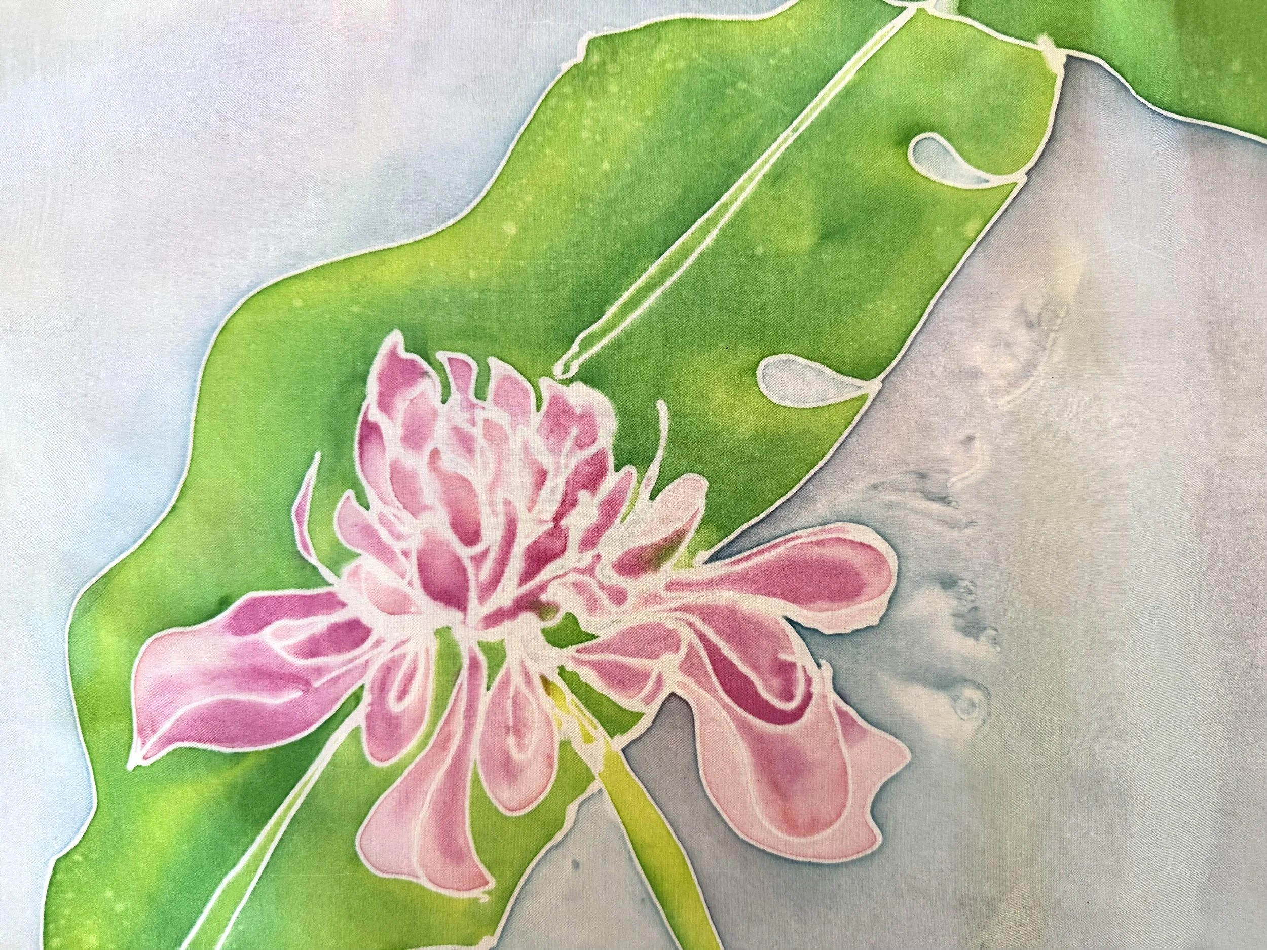 ‘I feel inspired walking around every day. It can be the tropical flowers, birds, beaches, even the colours the sun makes as it sets over the sea. I come up with an idea for the design and sketch it out. I then free-hand the design directly onto the silk. I then colour it in with my Silk Paints. It makes every single piece one of a kind.’