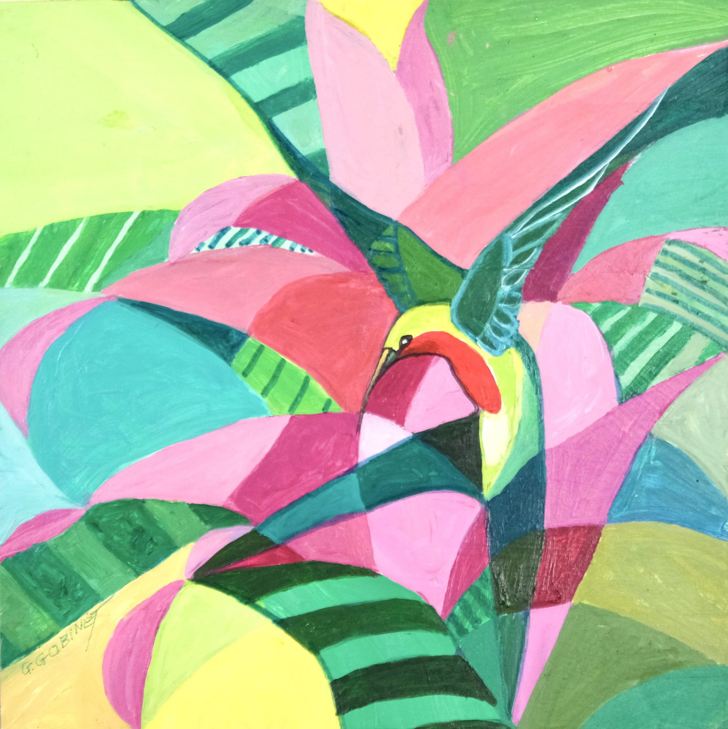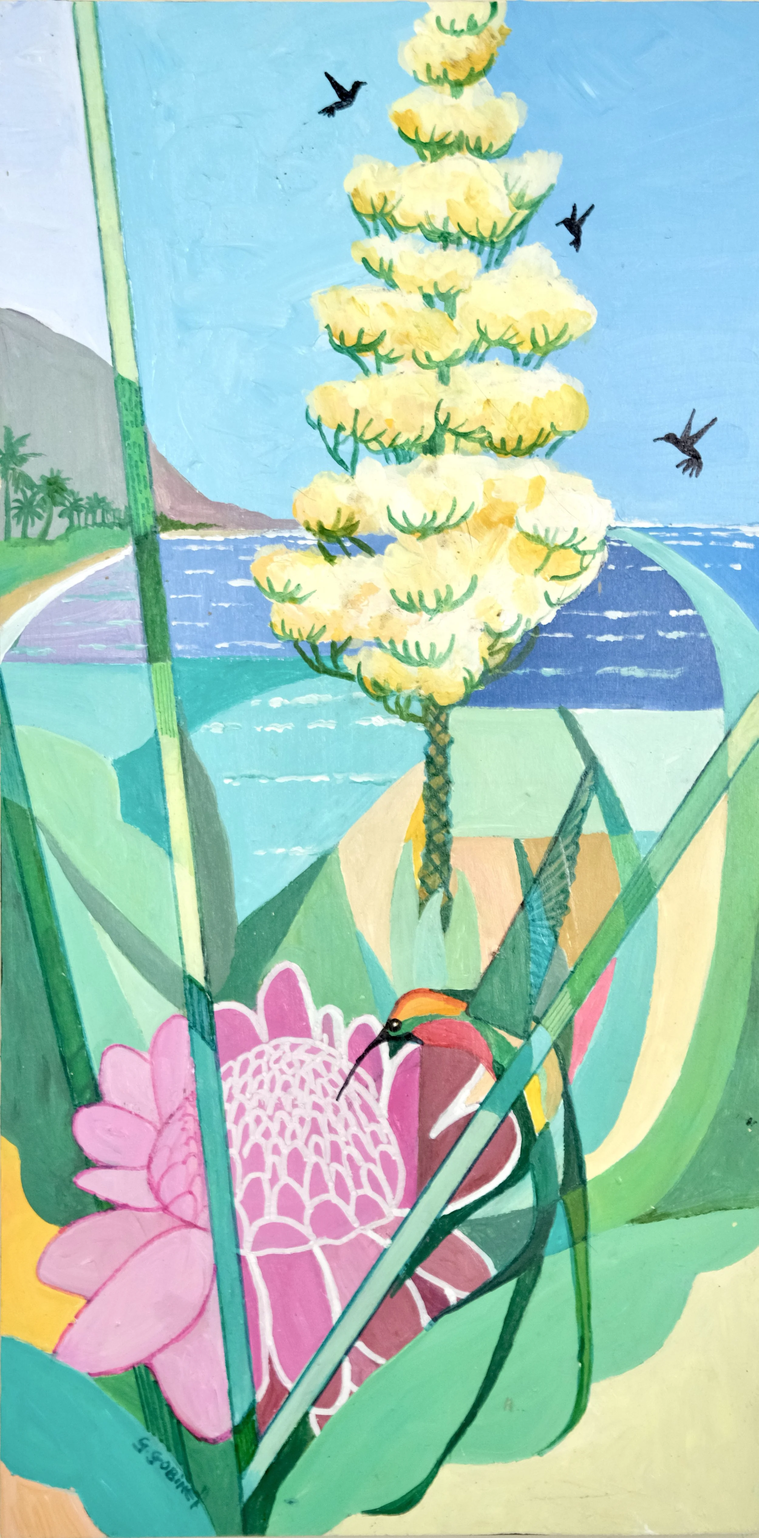 Antiguan artist Gilly Gobinet grew up in England. Rather than go to art school, her mother advised her to get a “proper” career, so, with a BSc Hons. Degree in Biological Sciences, she eventually worked as an international civil servant in France, before moving to Antigua in 1984 where her husband was offered a job. There she was able to fulfil her childhood dream of painting full time. She slowly developed her painting techniques, mainly in watercolour and acrylic. Her subjects reflect the beauty and charm of Antigua & the Caribbean, particularly tropical flora & fauna & marine life. She is happiest when painting and ever joyful when others take equal pleasure in her art. She runs her own Art Gallery on the premises of her secluded waterfront residence on the east coast of Antigua. Gilly also specialises in pet portraits, particularly dogs & cats, working from high res photos supplied by the owners.