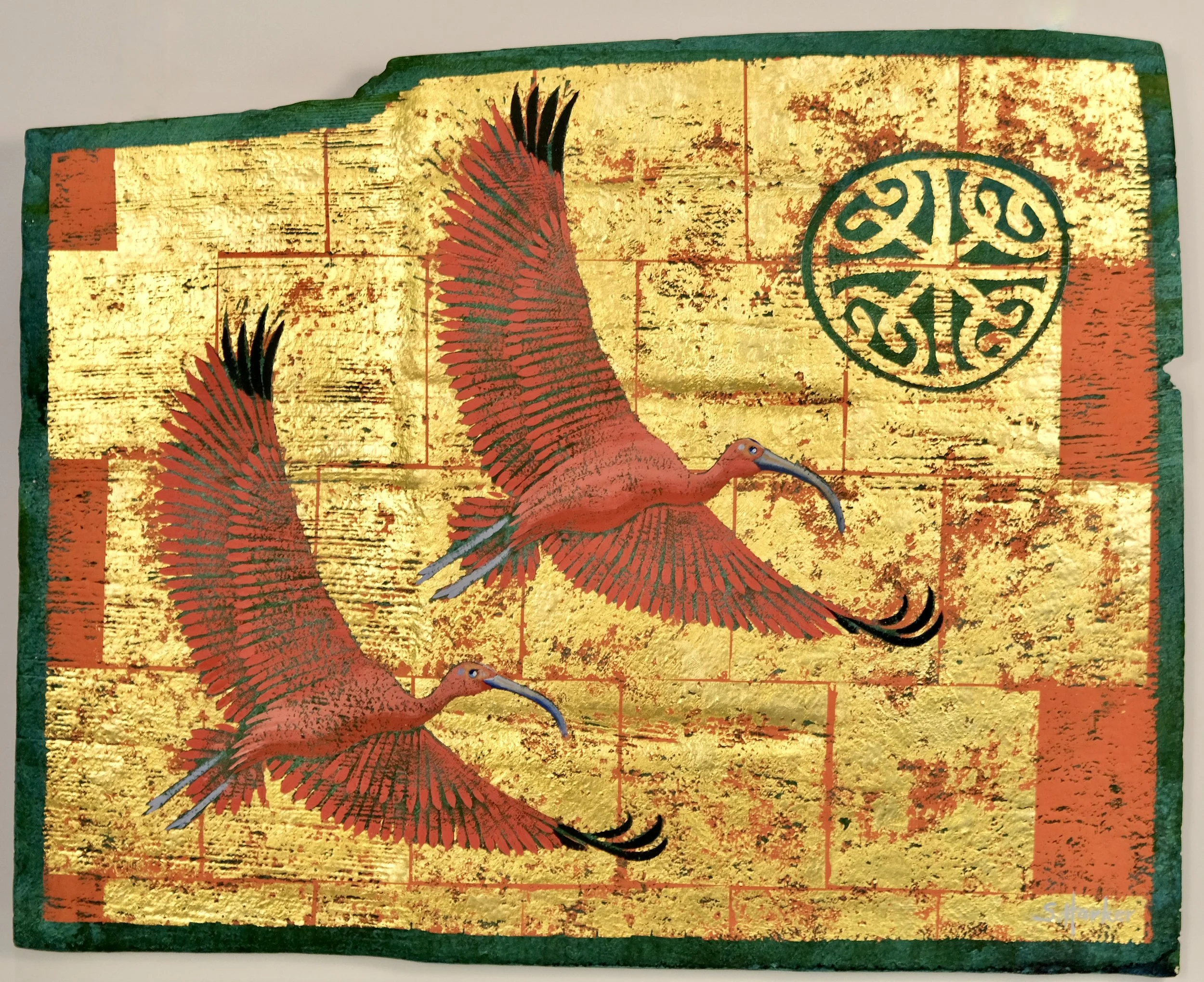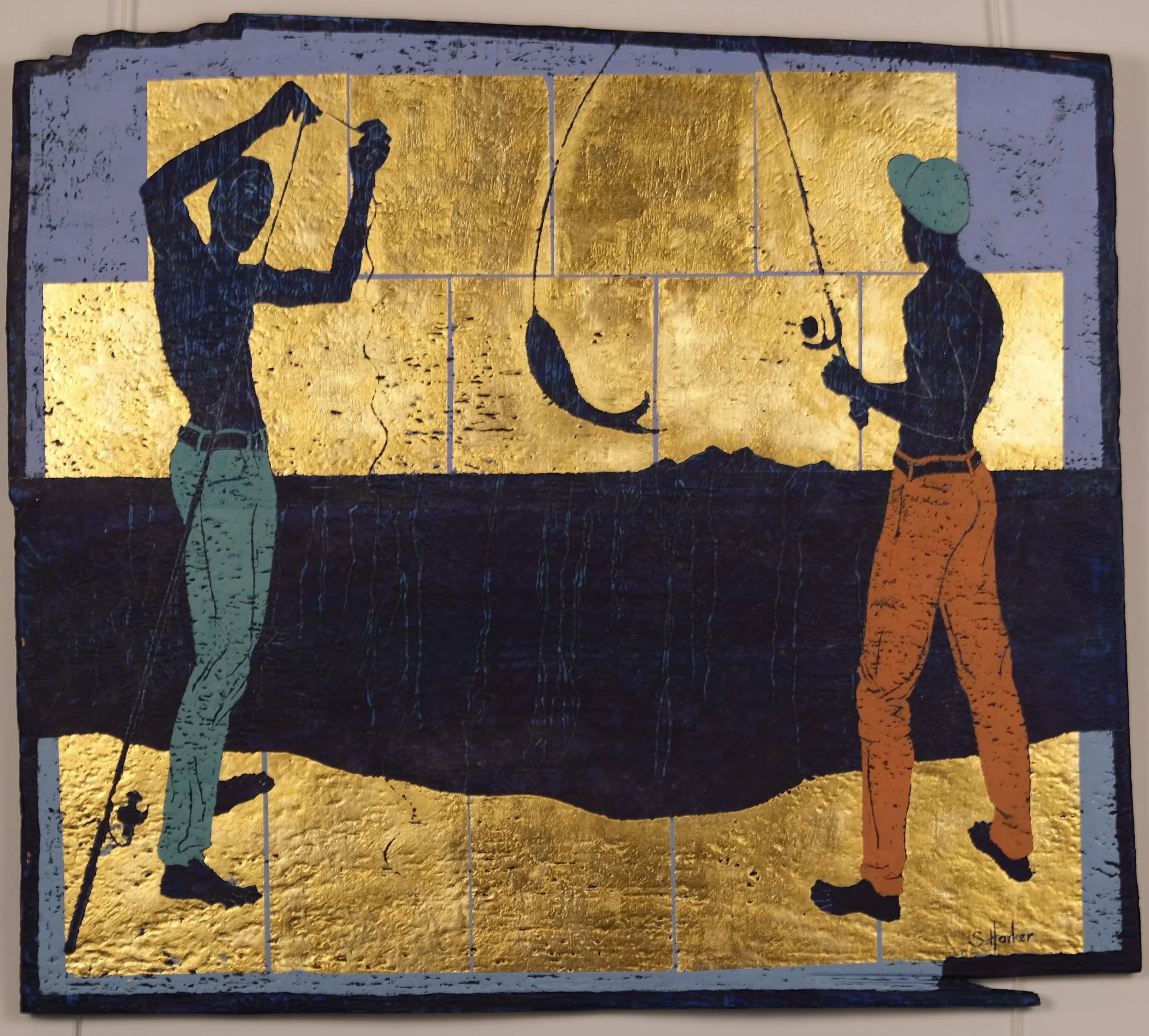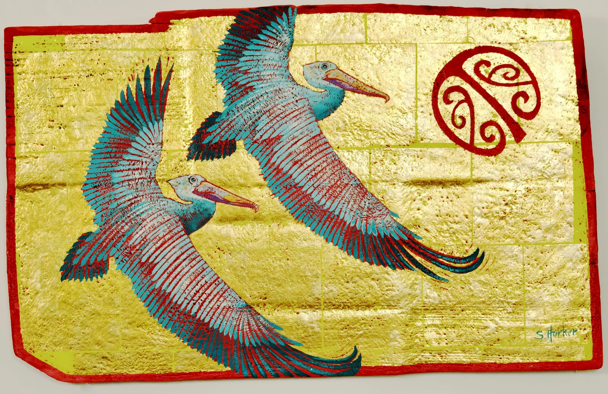 In 2007 Sallie opened the Fig Tree Studio Art Gallery. Here she sells not only her own work but also works by artists from all over the Caribbean and abroad. For her own work, Sallie, experiments with different media and enjoys using oils, watercolour and printmaking. Over the last few years she has developed a technique using gold leaf and oil paints on wooden shingles. She mainly depicts birds and marine life, however is also inspired by Caribbean life and loves to draw portraits and landscapes.